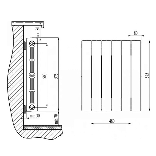 Биметаллический монолитный секционный радиатор 500 (6 секций) 1212 Вт, Supremo Rifar