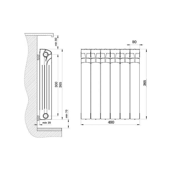 Биметаллический секционный радиатор 300/7 (7 секций) 931 Вт, EcoBuild Rifar