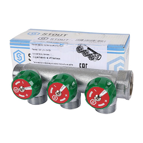Коллектор регулирующий 3/4", 3 отвода 3/4ЕК, Stout