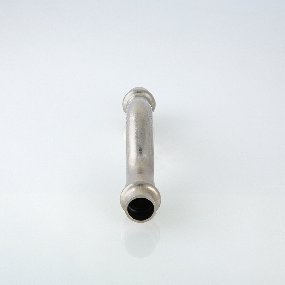 (VTi.971.I) Двухраструбный обвод из нержавеющей стали предназначен для соединения тонкостенных стальных труб в системах водоснабжения, отопления, других инженерных и технологических установках с рабочей температурой до 120 °С. Номинальное давление – 16 бар.
