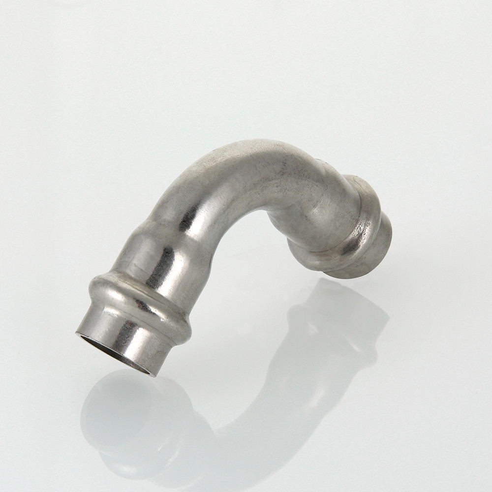 (VTi.951.I) Двухраструбный пресс-угольник из нержавеющей стали обеспечивает соединение под углом 90° тонкостенных стальных труб систем водоснабжения, отопления, иных инженерных и технологических установок с рабочей температурой до 120 °С и давлением до 16 бар. Изделие изготовлено из стали AISI 304. Материал уплотнительных колец – эластомер EPDM. Отдельно можно приобрести уплотнительные кольца из FPM (витон); в этом случае максимальная рабочая температура увеличивается до 140 °С.