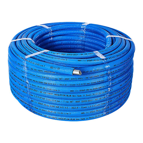 Труба из сшитого полиэтилена PEX-a с кислородным слоем, 25х3,5 (бухта 50 метров), серая в синей теплоизоляции, Stout