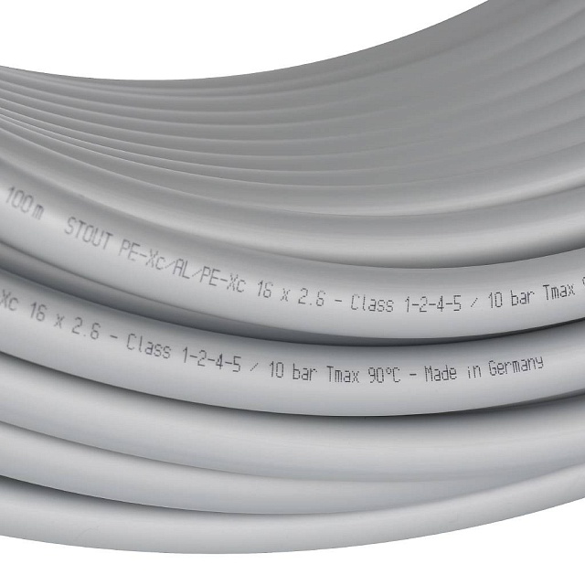 Труба PEX-c /Al/ PEX-с 16x2,6, (бухта 100 м) из сшитого полиэтилена с алюминиевым слоем, универсальная, серая, Stout