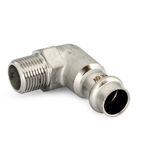 Угольник-пресс 90°, 28х3/4" НР, Ру16, Tmax=100°С, нержавеющая сталь, Uni-Fitt