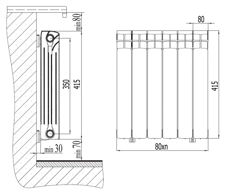 Биметаллический секционный радиатор 350/07, 952 Вт, НП левое, Rifar Base Ventil