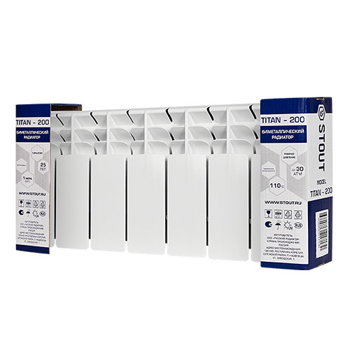 Радиатор биметаллический Titan 200, 8 секций, боковое подключение, белый RAL 9016, Stout