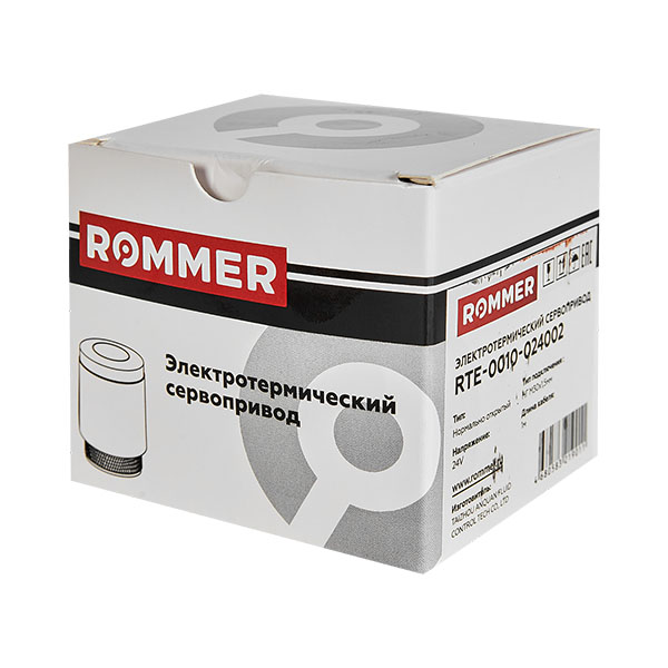 Электротермический компактный сервопривод, нормально открытый, 24 В, Rommer