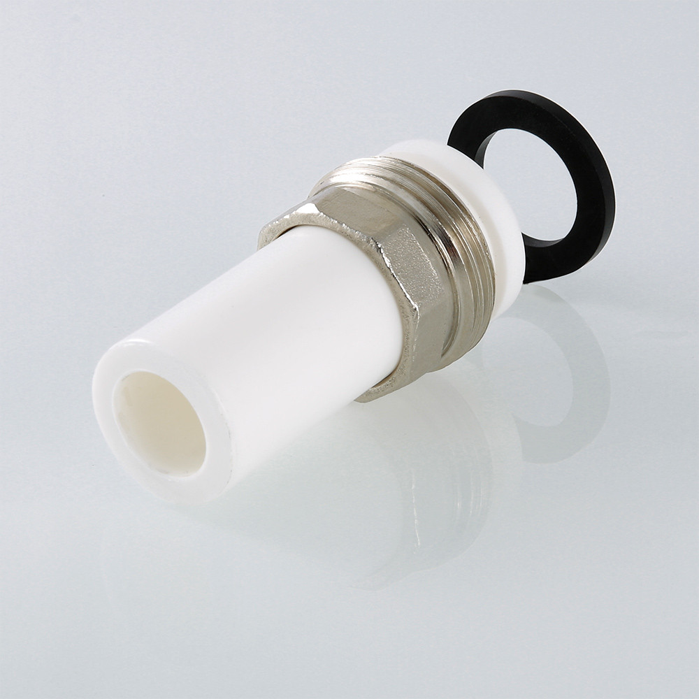 (VTp.721.0) Фитинг для соединения полипропиленового трубопровода и компонента инженерной системы с помощью накидной гайки. Резьба – наружная трубная по ГОСТу 6357.