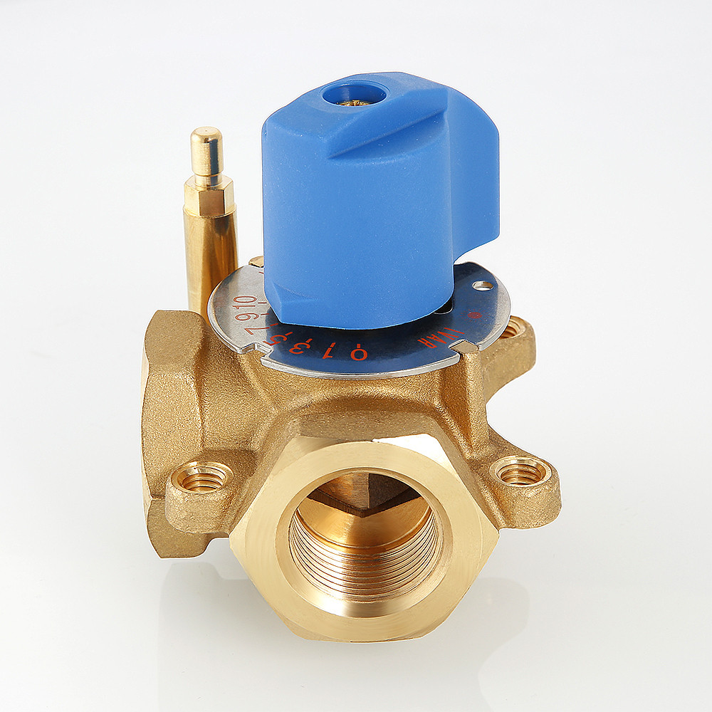Предназначен для использования в смесительных и разделительных узлах гидравлических систем. Управление клапаном может осуществляться вручную или с помощью сервопривода с крутящим моментом не менее 5 Н•м (рекомендуется модель VT.M.106). Корпус и регулирующий элемент выполнены из латуни, что исключает возможность появления коррозионных отложений в рабочих зазорах. Уплотнение штока достигается с помощью двух колец из синтетического каучука EPDM PEROX. При этом верхнее кольцо легко заменить без полной разборки изделия. Клапан ремонтопригоден и состоит всего из четырех основных деталей, что повышает его надежность. Максимальная рабочая температура теплоносителя – 120 °C, нормативное давление – 10 бар. Резьба присоединений – внутренняя. Условные диаметры предлагаемых моделей – 3/4, 1, 1 1/4". Ручка управления входит в комплект.