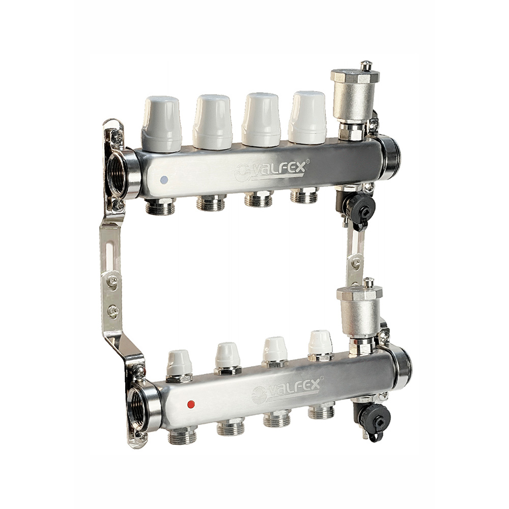 Коллекторная группа с балансировочными клапанами и автомат. воздухоотводчиком, 1"х4х3/4"ЕК Valfex