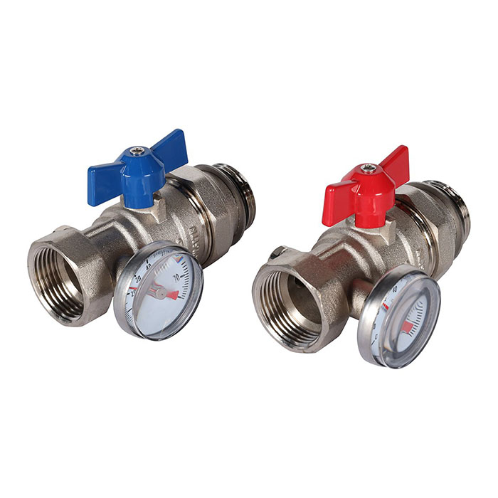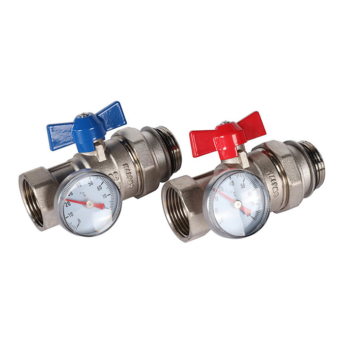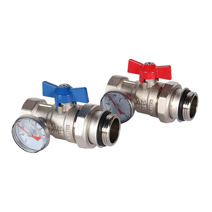 Комплект прямых шаровых кранов с термометрами 1”, Rommer