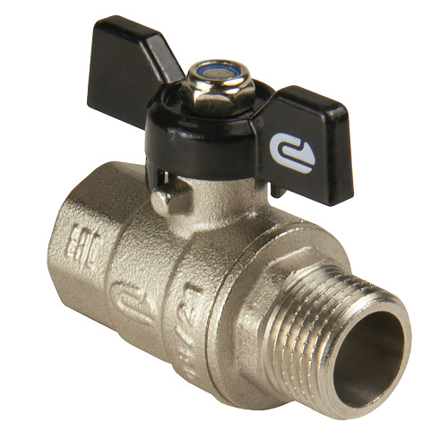 Кран шаровый для воды 1/2" ВР-НР бабочка, никель, ONDO