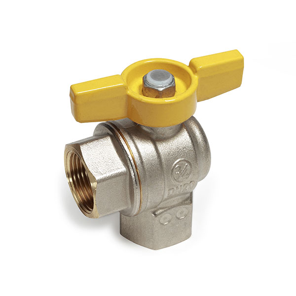Кран шаровой угловой полнопроходной с желтой рукояткой, с внутренней резьбой, никел 3/4" Giacomini