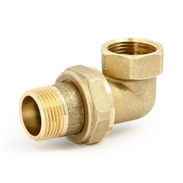 Разъемное соединение с уплотнением (плоская. прокладка) латунное угловое 1/2" ВР-НР, Uni-Fitt