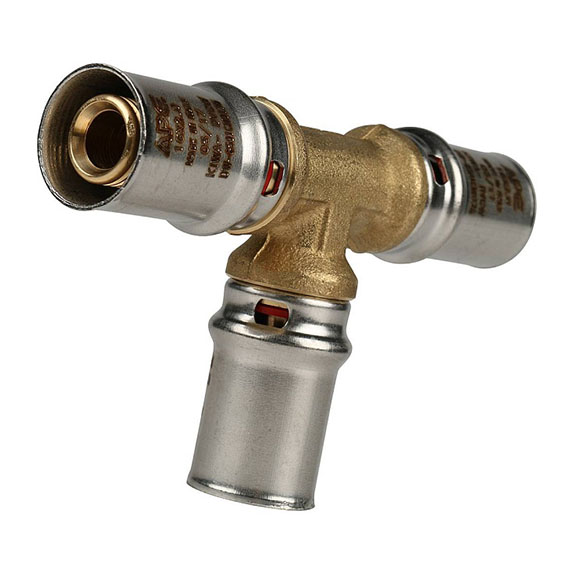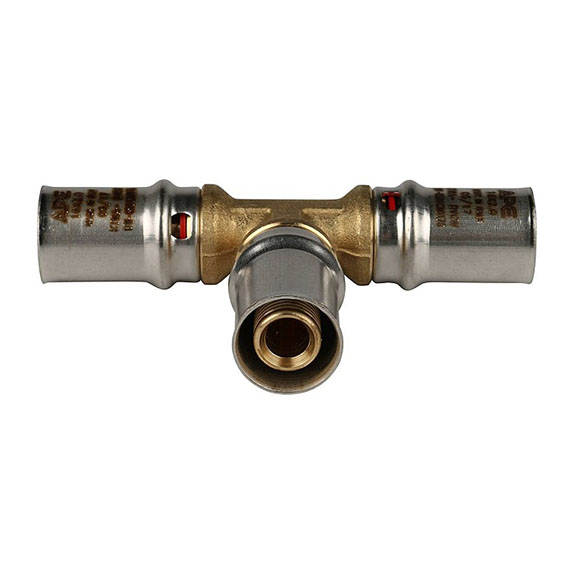 Тройник равнопроходный 26х26х26 для металлопластиковых труб прессовой, Stout