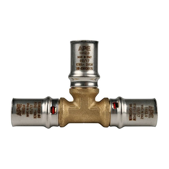 Тройник равнопроходный 20х20х20 для металлопластиковых труб прессовой, Stout