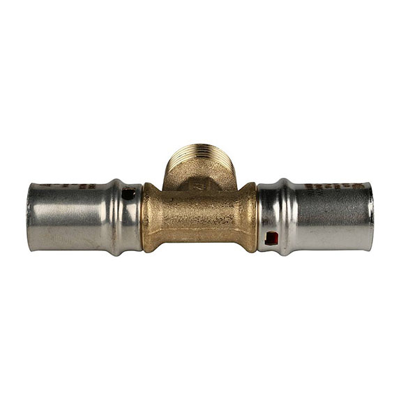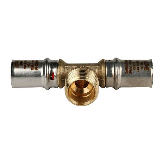 Тройник-переходник с наружной резьбой 20х1/2х20 для металлопластиковых труб прессовой, Stout