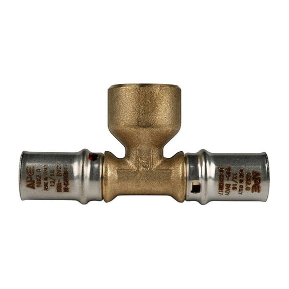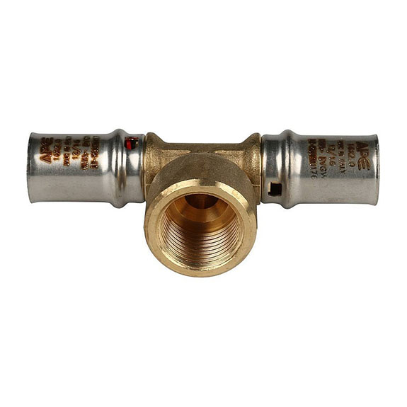 Тройник-переходник с внутренней резьбой 26х3/4х26 для металлопластиковых труб прессовой, Stout