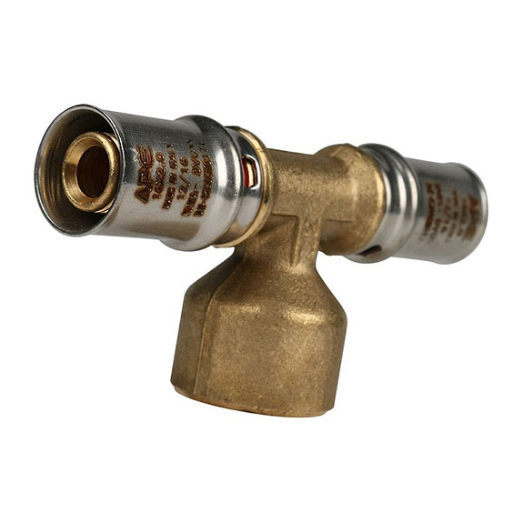 Тройник-переходник с внутренней резьбой 20х1/2х20 для металлопластиковых труб прессовой, Stout