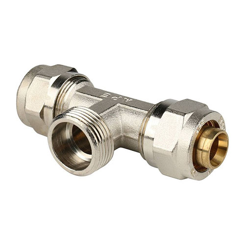Тройник-переходник с наружной резьбой 1x32 для металлопластиковых труб винтовой, Stout