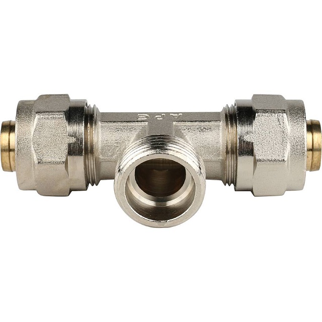 Тройник-переходник с наружной резьбой 3/4х20 для металлопластиковых труб винтовой, Stout