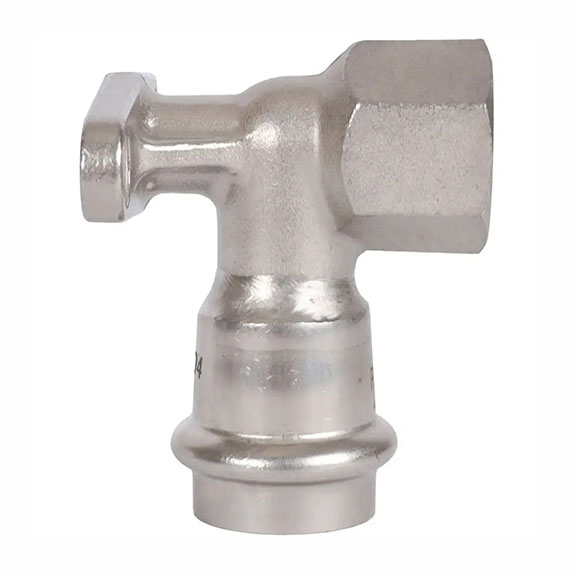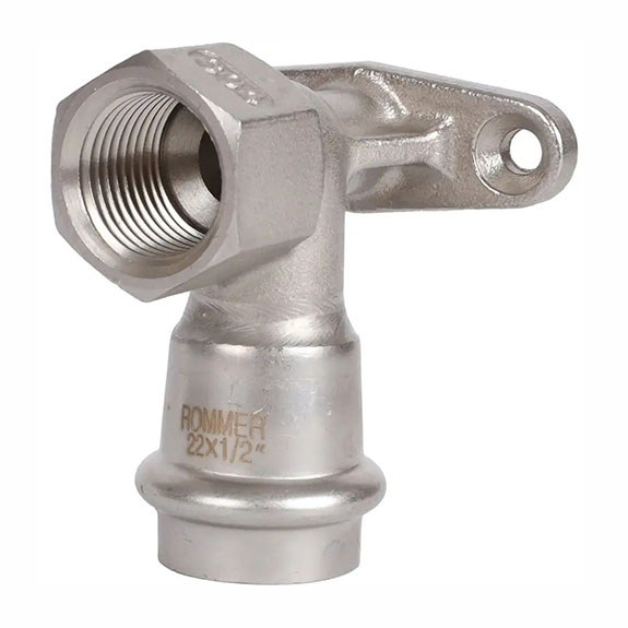 Угольник настенный с креплением ВПр-ВР 22х3/4мм, из нержавеющей стали, пресс, Rommer