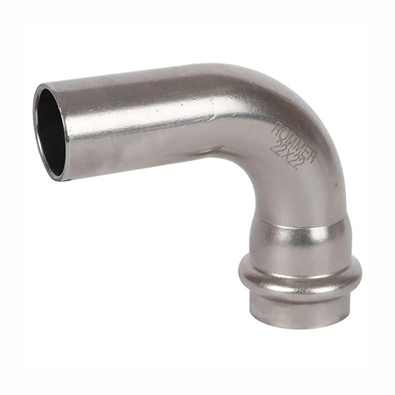 Угольник однораструбный 90° ВПр-НПр 28х28мм, из нержавеющей стали, пресс, Rommer